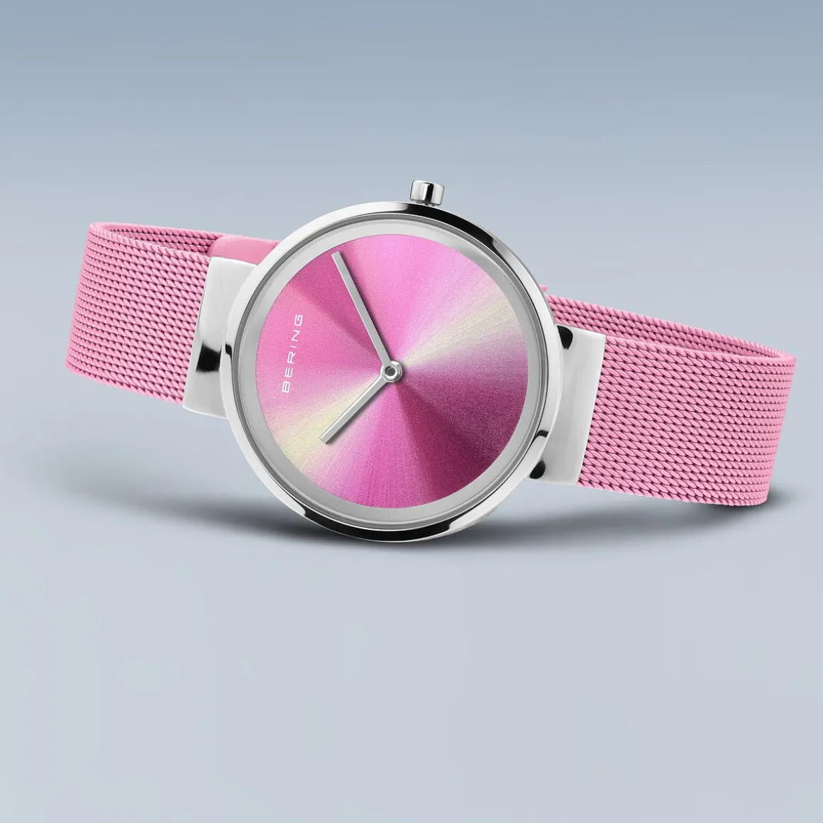 Puristisch roestvrij staal wordt gecombineerd met delicate, soepele Milanaise bandjes in de Classic AURORA horlogecollectie. Klassieke elegantie ontmoet een onmiskenbaar aangenaam draaggevoel en zorgt voor de klassiek edele BERING look.