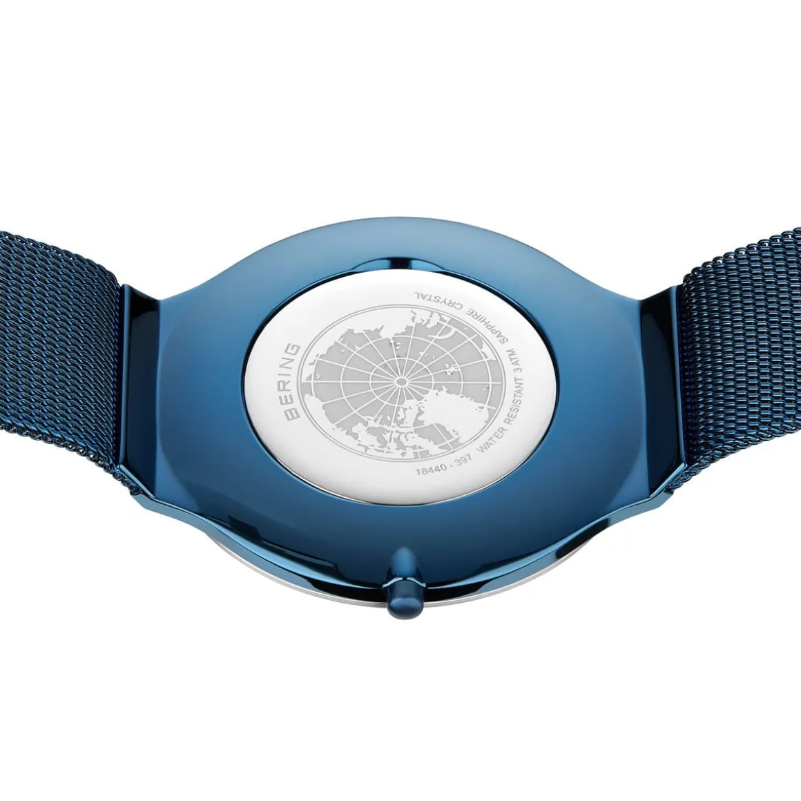 | Kleur horlogekast: | blauw gepolijst/geborsteld |