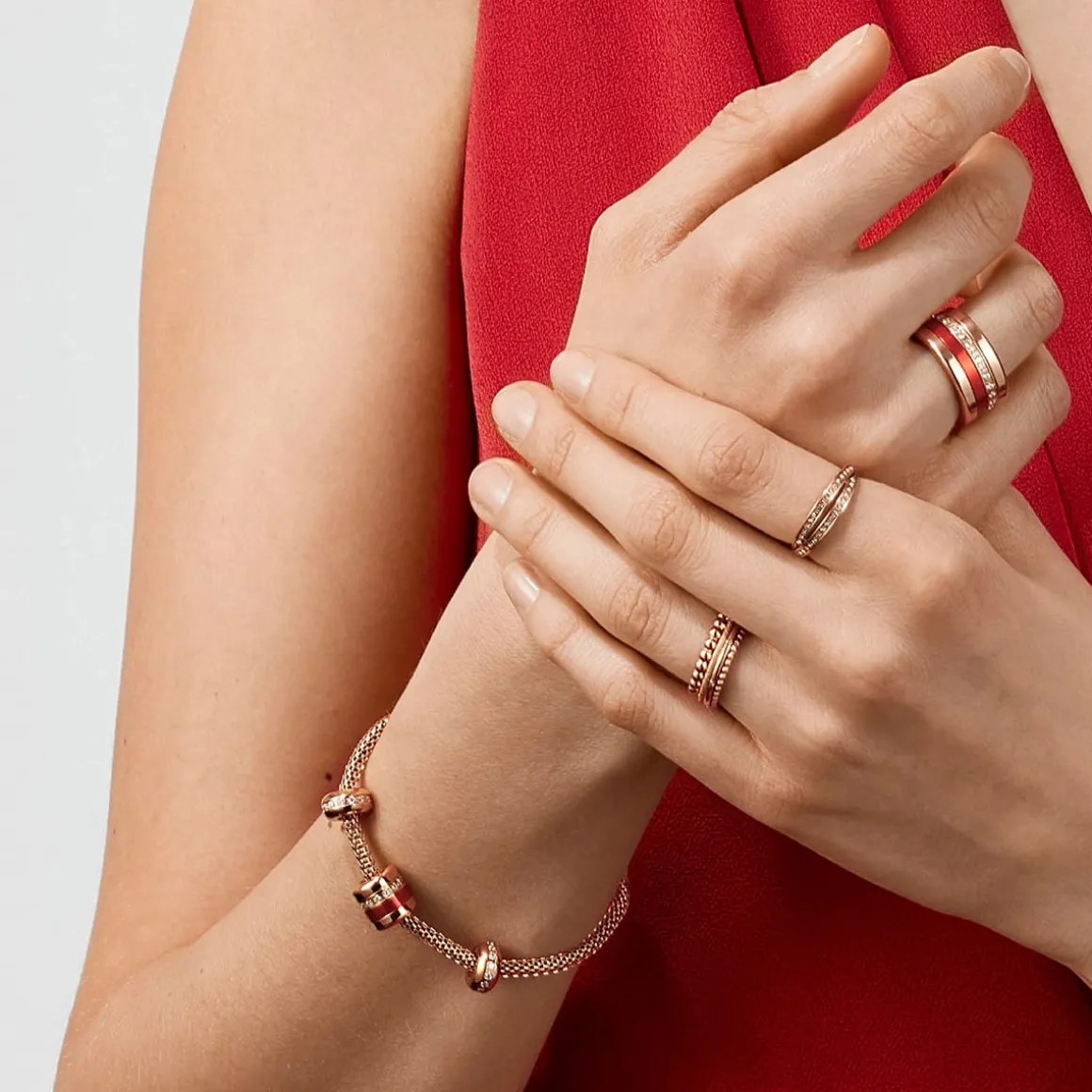 De kleur rood. De romantiek van de Noordpool. De liefde voor detail. En een geheime en persoonlijke boodschap van liefde – onze unieke collectie met rode sieraadelementen combineert dit allemaal!