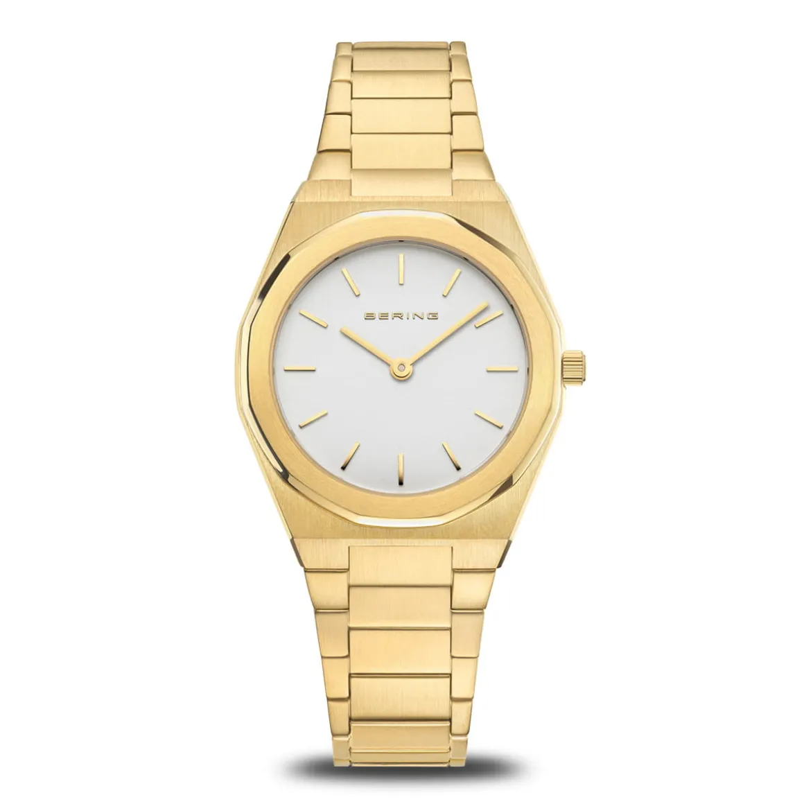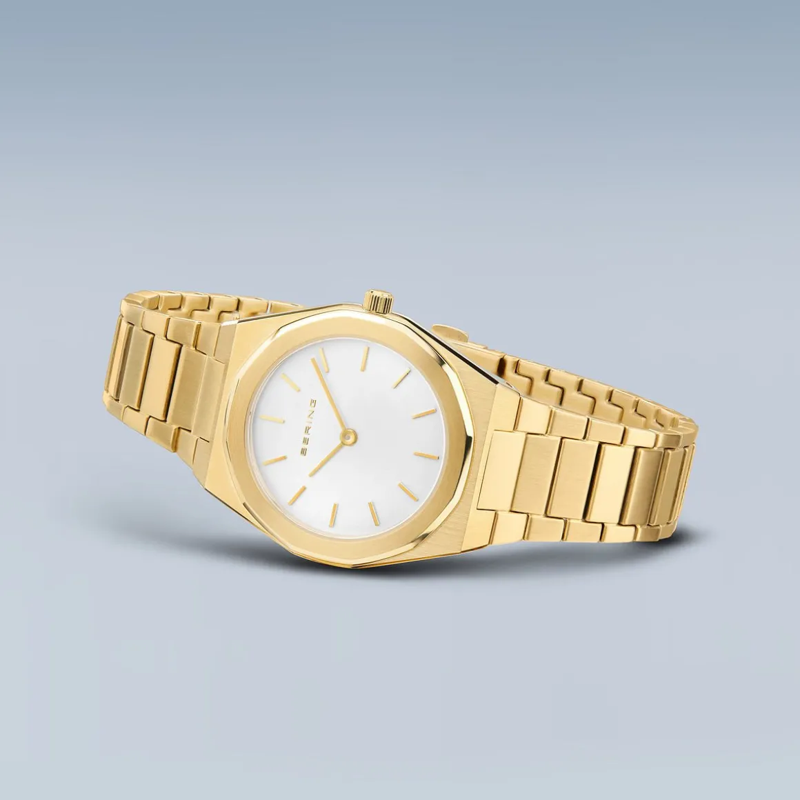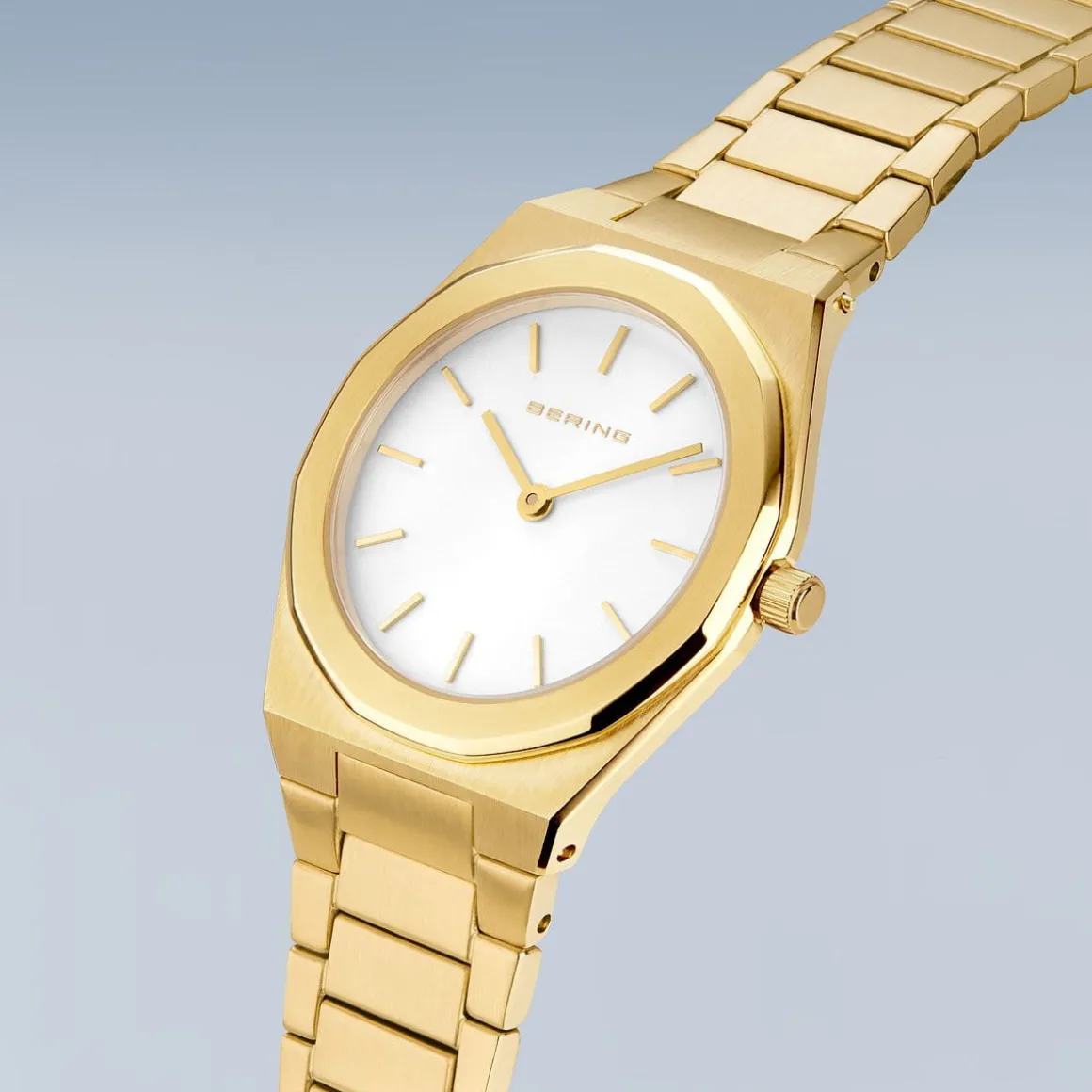Voor de horloges uit de Classic-collectie worden uitsluitend hoogwaardige materialen gebruikt, zoals bijzonder hard, glashelder en krasbestendig saffierglas. Dit betekent dat de tijd geen sporen achterlaat op dit horlogeglas. Het gebruikte huidvriendelijke roestvrij staal garandeert een glamoureuze uitstraling. De stoere uitstraling van het staal en de puristische, heldere lijn van het ontwerp van het BERING-horloge vullen elkaar ideaal aan. De kast – gepolijst of geborsteld – is gemaakt van zuiver en hoogwaardig roestvrij staal (316L), zoals ook gebruikt in de medische technologie.