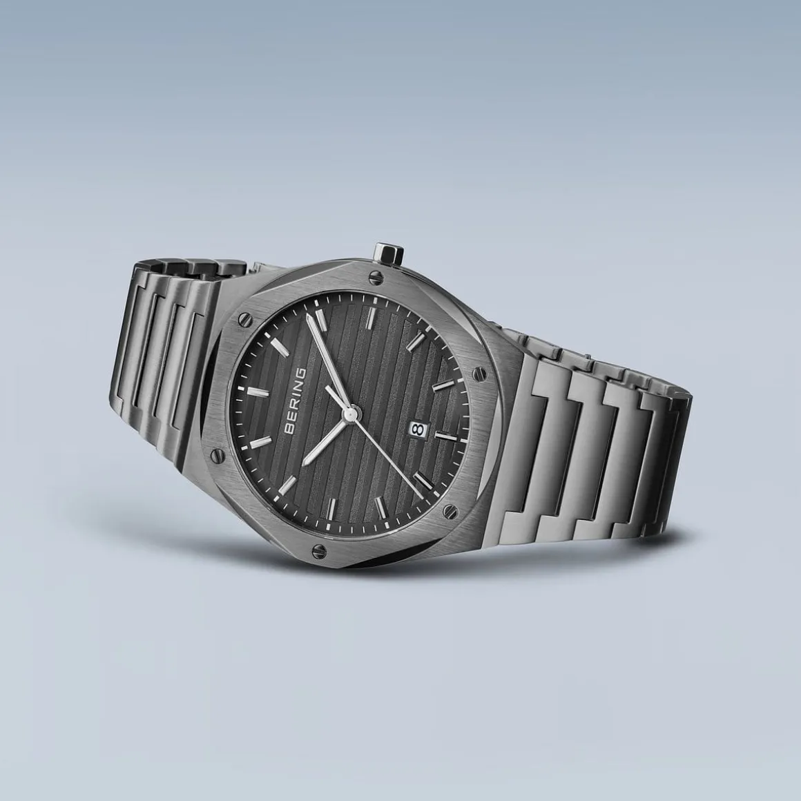 Voor de horloges uit de Classic-collectie worden uitsluitend hoogwaardige materialen gebruikt, zoals bijzonder hard, glashelder en krasbestendig saffierglas. Dit betekent dat de tijd geen sporen achterlaat op dit horlogeglas. Het gebruikte huidvriendelijke roestvrij staal garandeert een glamoureuze uitstraling. De stoere uitstraling van het staal en de puristische, heldere lijn van het ontwerp van het BERING-horloge vullen elkaar ideaal aan. De kast – gepolijst of geborsteld – is gemaakt van zuiver en hoogwaardig roestvrij staal (316L), zoals ook gebruikt in de medische technologie.