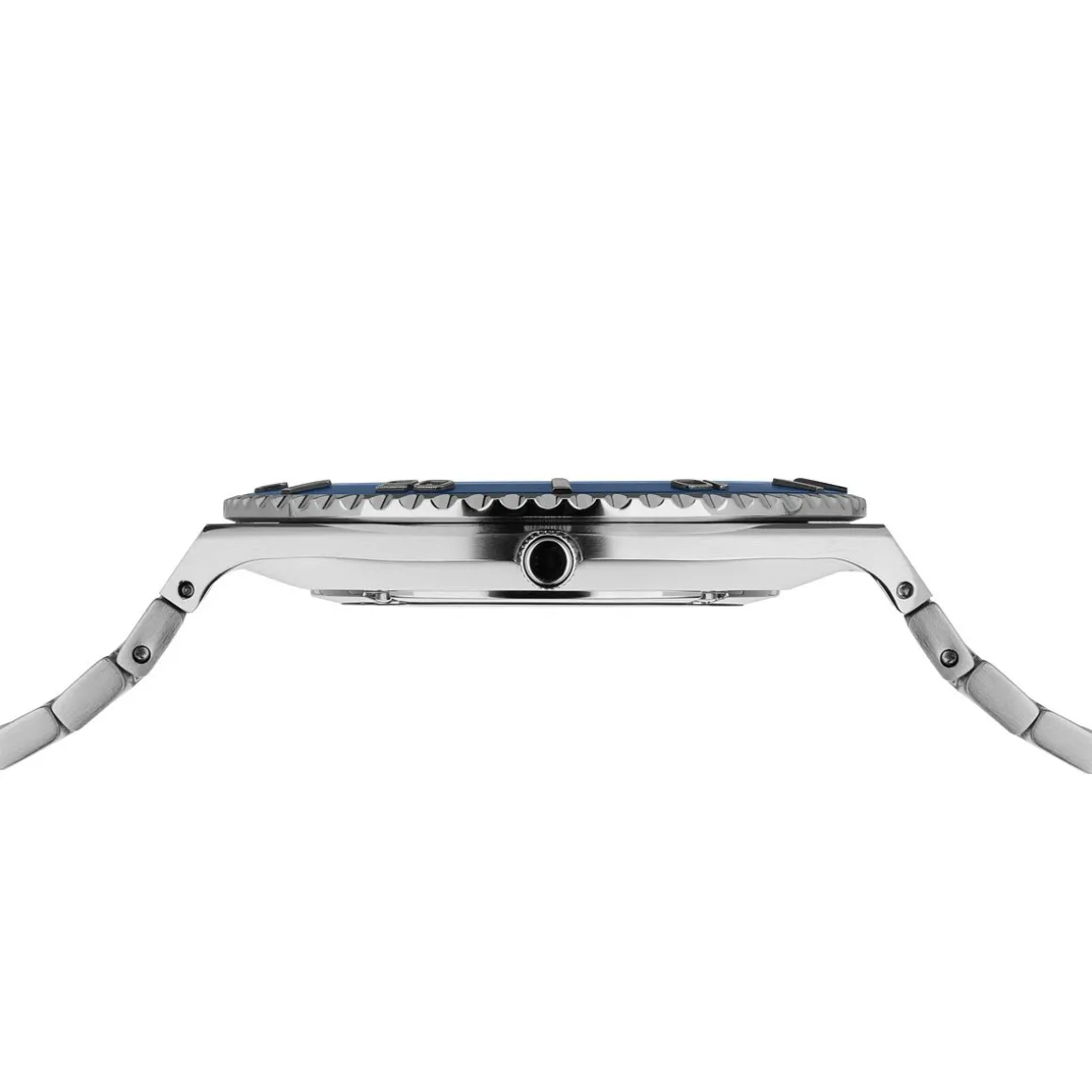 Krasbestendig saffierglas en een IP-coating maken het model extreem bestendig. Hij is waterbestendig en functioneert betrouwbaar tot een druk van 10 ATM. Een ideale metgezel zowel op zee als op het land.