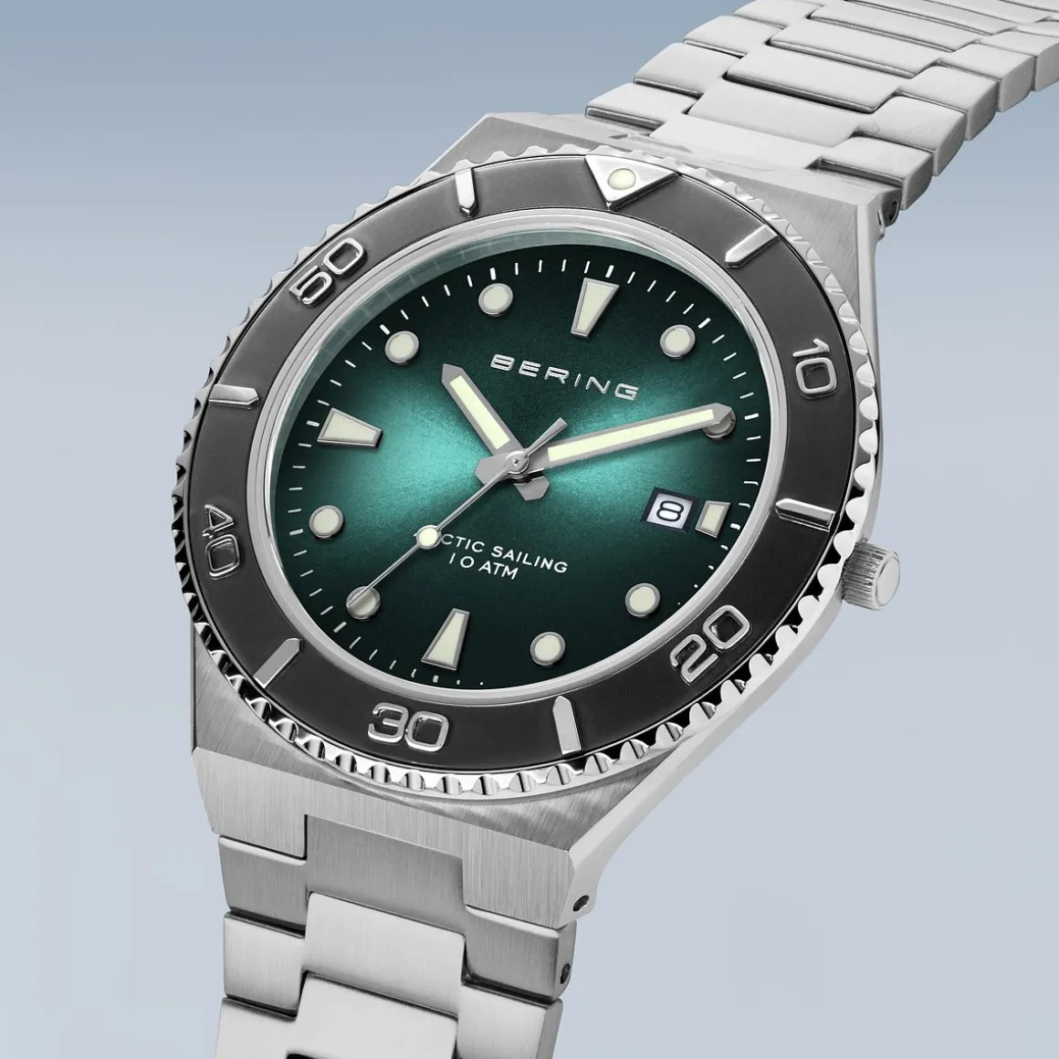 Een nobel detail is de Sunray wijzerplaat met datumaanduiding, die in het daglicht glinstert als de zon op Arctisch ijs. Het nieuwe BERING herenhorloge is verkrijgbaar in vier kleurvarianten.