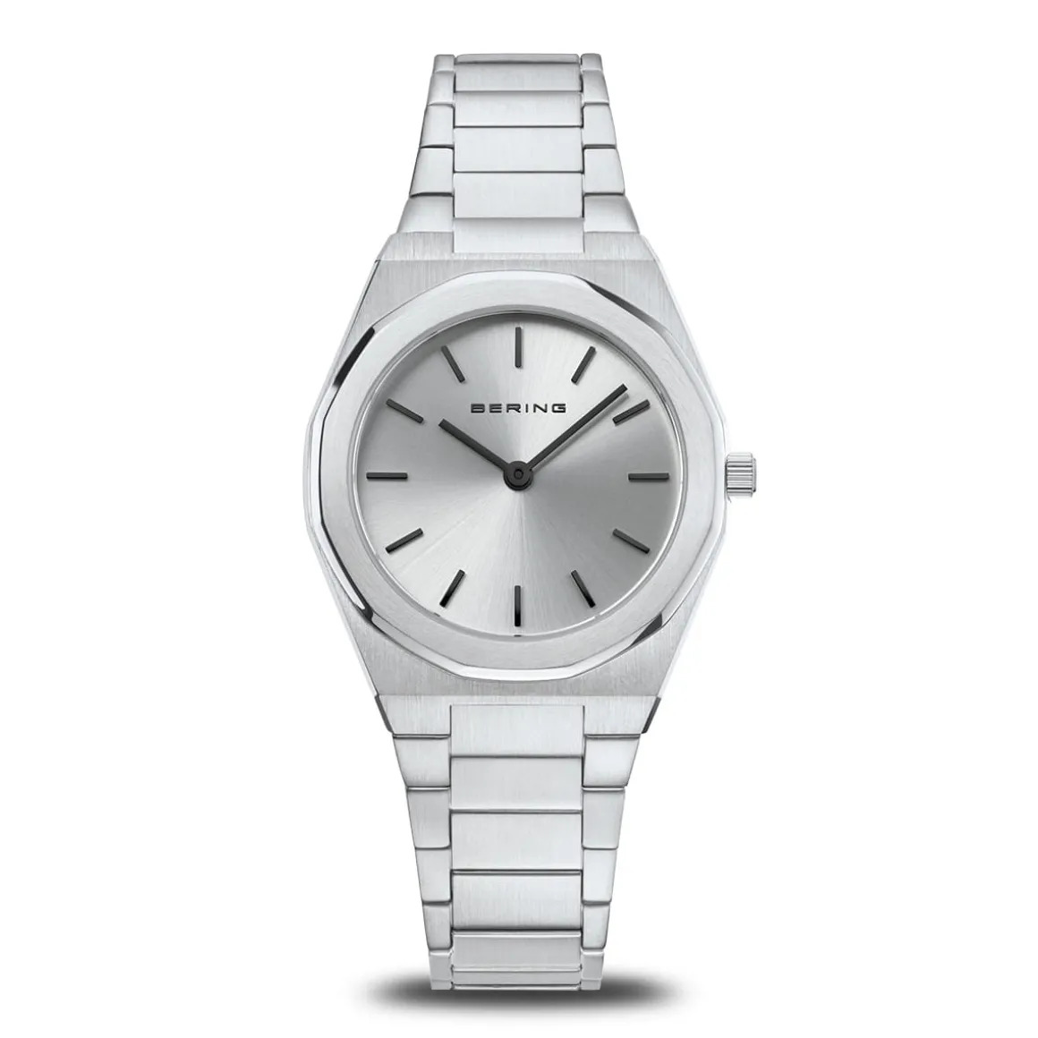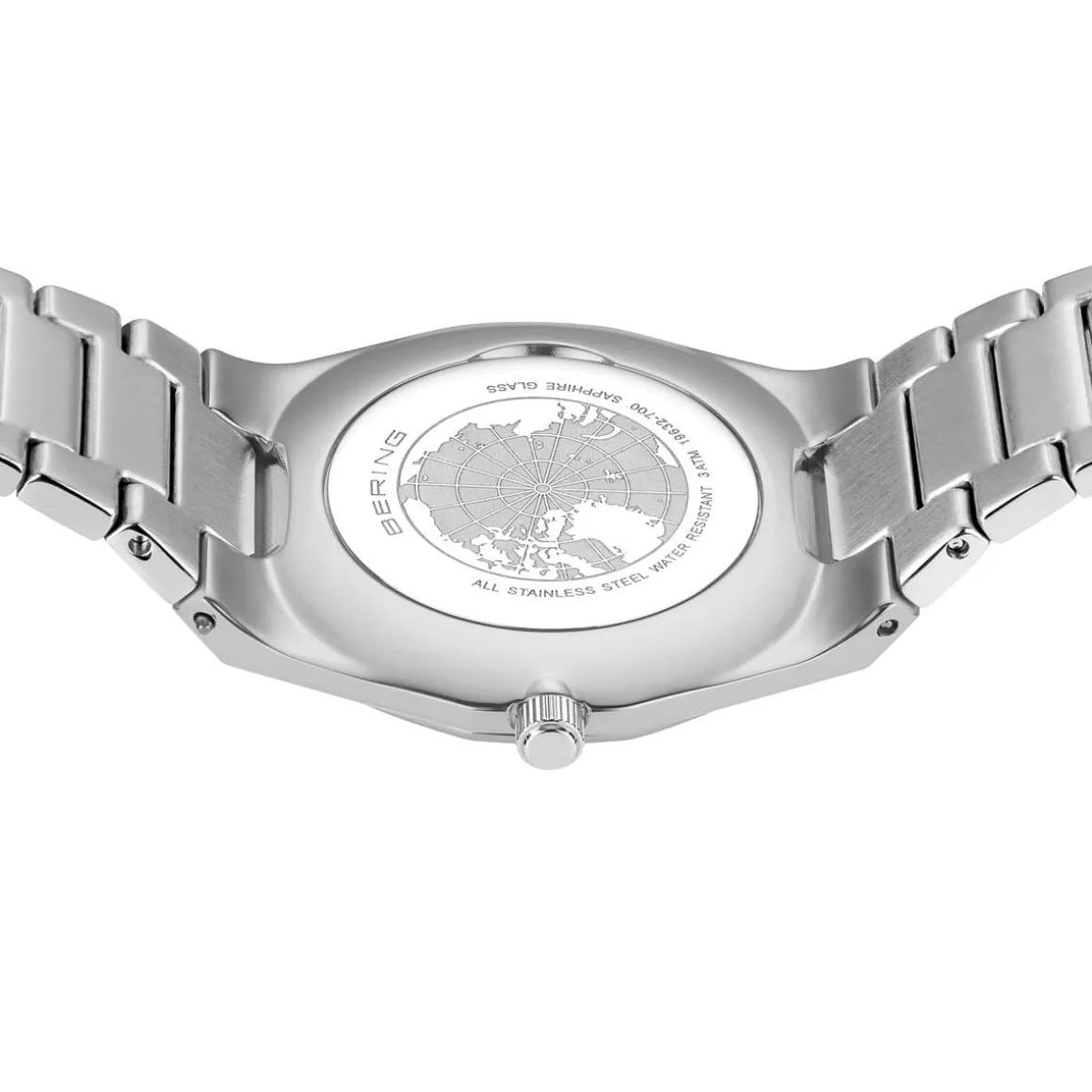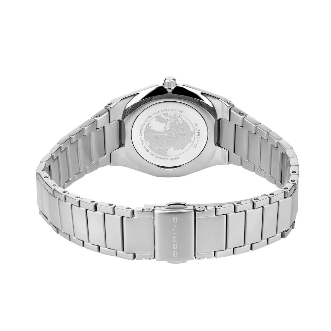 Voor de horloges uit de Classic-collectie worden uitsluitend hoogwaardige materialen gebruikt, zoals bijzonder hard, glashelder en krasbestendig saffierglas. Dit betekent dat de tijd geen sporen achterlaat op dit horlogeglas. Het gebruikte huidvriendelijke roestvrij staal garandeert een glamoureuze uitstraling. De stoere uitstraling van het staal en de puristische, heldere lijn van het ontwerp van het BERING-horloge vullen elkaar ideaal aan. De kast – gepolijst of geborsteld – is gemaakt van zuiver en hoogwaardig roestvrij staal (316L), zoals ook gebruikt in de medische technologie.