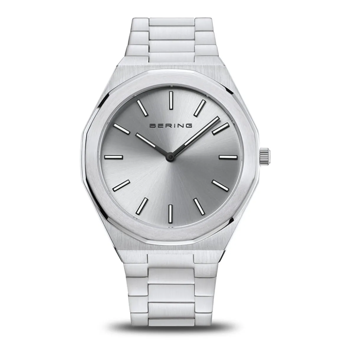 Voor de horloges uit de Classic-collectie worden uitsluitend hoogwaardige materialen gebruikt, zoals bijzonder hard, glashelder en krasbestendig saffierglas. Dit betekent dat de tijd geen sporen achterlaat op dit horlogeglas. Het gebruikte huidvriendelijke roestvrij staal garandeert een glamoureuze uitstraling. De stoere uitstraling van het staal en de puristische, heldere lijn van het ontwerp van het BERING-horloge vullen elkaar ideaal aan. De kast – gepolijst of geborsteld – is gemaakt van zuiver en hoogwaardig roestvrij staal (316L), zoals ook gebruikt in de medische technologie.