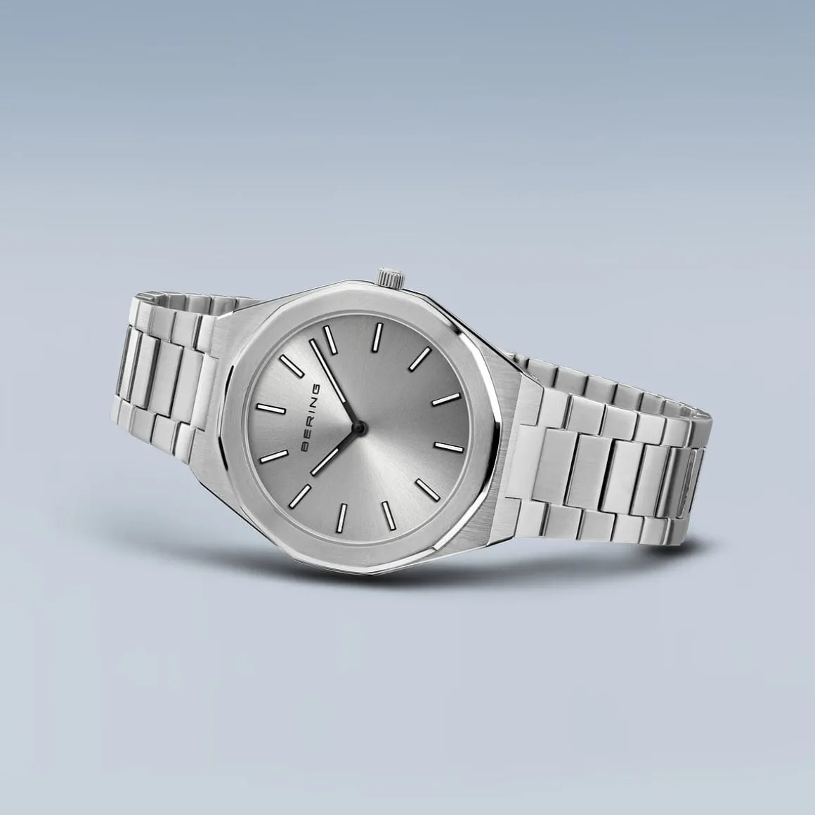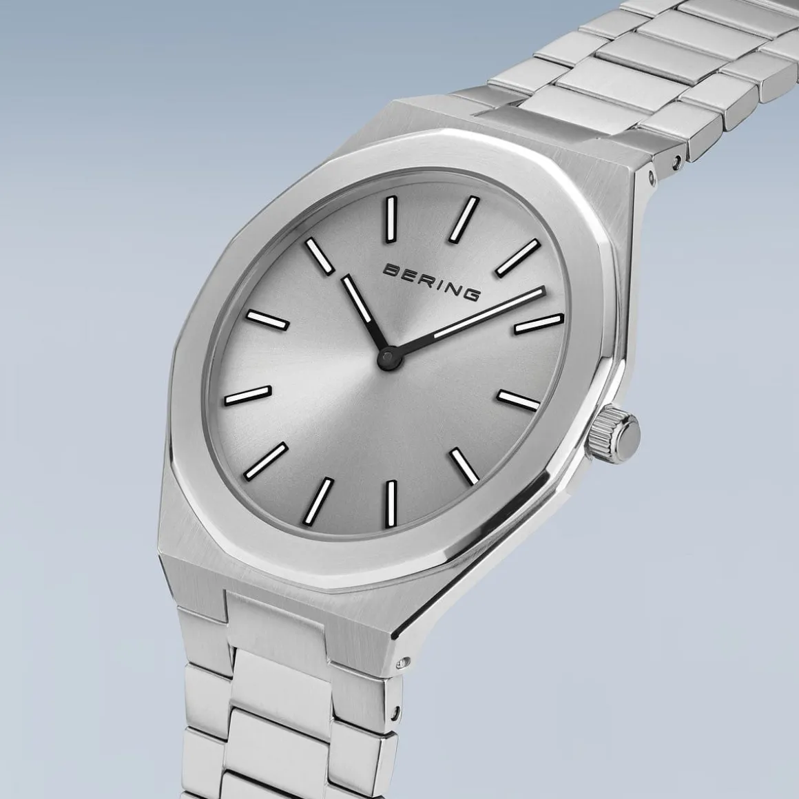 Puristisch roestvrij staal wordt in de CLASSIC horlogecollectie gecombineerd met delicate, soepele Milanaise bandjes of edele bandjes van natuurlijk gelooid kalfsleer. Klassieke elegantie ontmoet een onmiskenbaar aangenaam draaggevoel en zorgt voor de klassiek nobele BERING-look.
