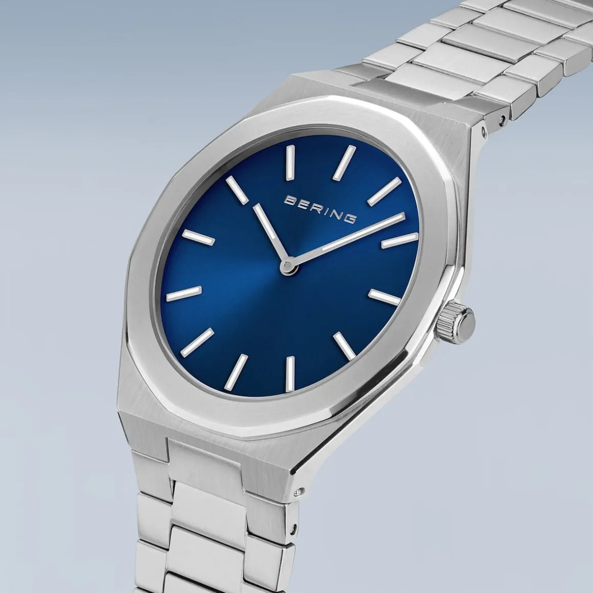 Puristisch roestvrij staal wordt in de CLASSIC horlogecollectie gecombineerd met delicate, soepele Milanaise bandjes of edele bandjes van natuurlijk gelooid kalfsleer. Klassieke elegantie ontmoet een onmiskenbaar aangenaam draaggevoel en zorgt voor de klassiek nobele BERING-look.