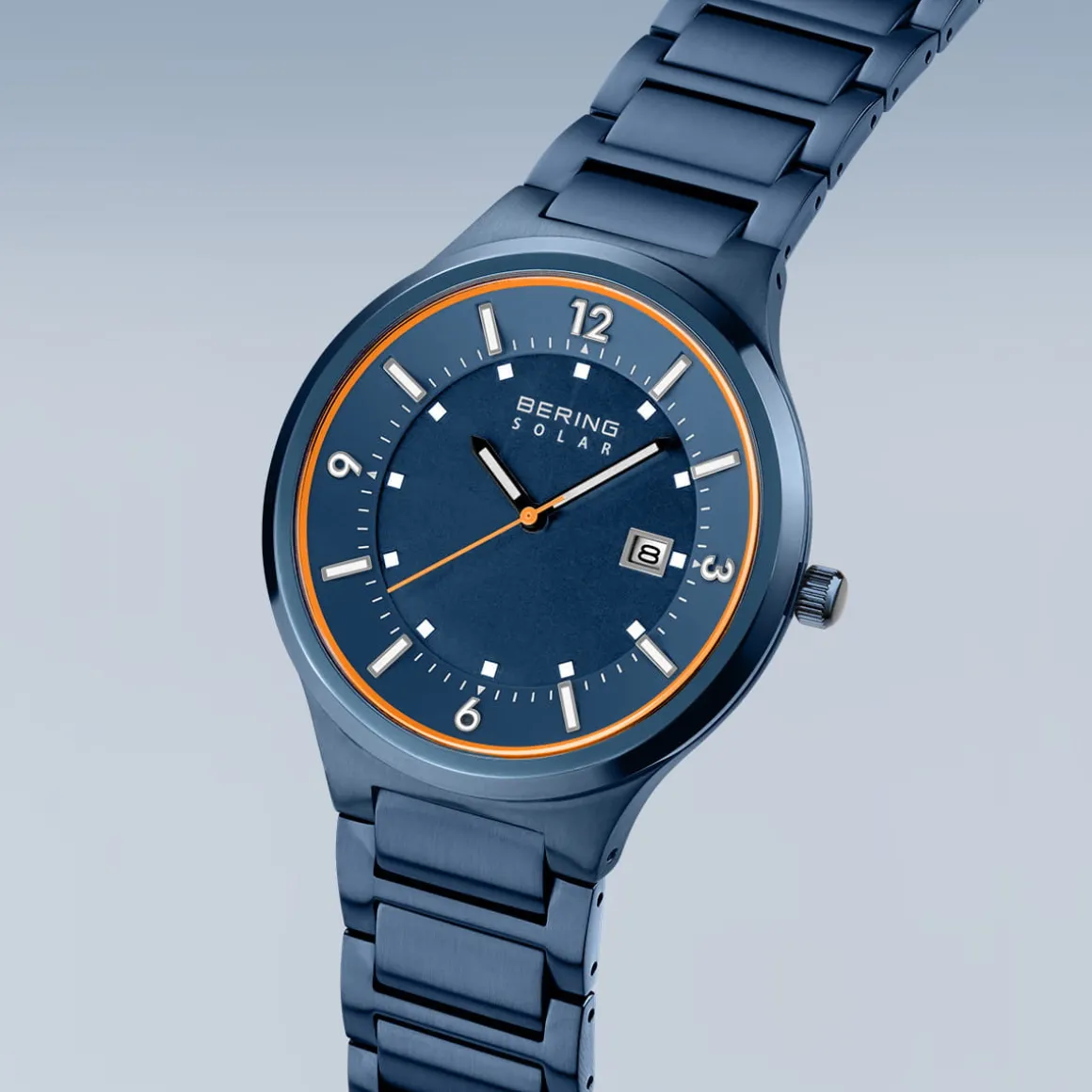 De zonnecel onder de wijzerplaat van het BERING polshorloge zet niet alleen zonlicht, maar elk soort licht om in elektrische energie, die wordt opgeslagen in een oplaadbare secundaire batterij. Het is niet nodig om batterijen te vervangen, zoals meestal het geval is bij kwartshorloges. De horloges in de SOLAR COLLECTION hebben een energiereserve zodat ze 6 tot 12 maanden kunnen lopen zodra ze volledig zijn opgeladen – zelfs als ze gedurende die tijd volledig in het donker worden gehouden. Deze horlogecollectie wordt gekenmerkt door krasbestendig saffierglas, een kast en armband van lichtgewicht titanium en de meesterlijke verwerking van hoogwaardige materialen. Een bijzonder designelement dat in het oog springt zijn de verhoogde indexen in een gemakkelijk af te lezen 3D-look, die als ijsbergen uit het water steken.